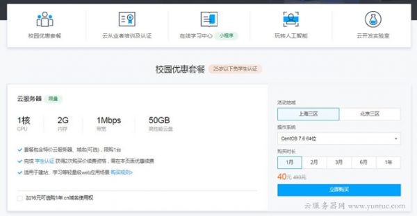 通过腾讯云官网个人认证的在校大学生专享的特价云服务器。如果你是在校学生,千万不要错过!25岁以下免学生证哦【注】企业用户、协作者、后付费用户暂不支持参与此活动。