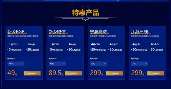 | 4核心 | 4GB | 50G+30G | 20Mbps/无限(宁波) | 1个 | 209/首月 续费299/月 | 点击购买 |