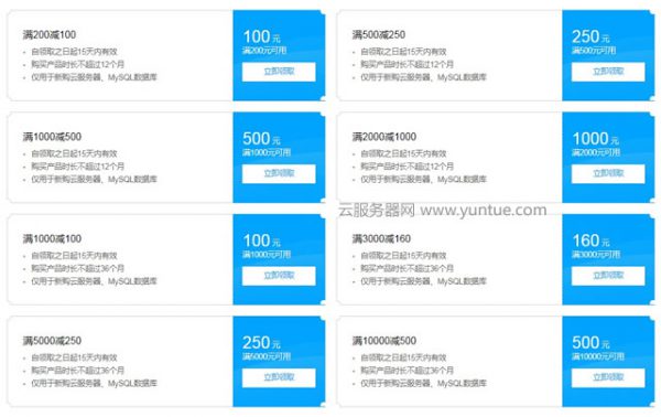 如果你完全符合腾讯云政策,就可以领取到满200减100、满500减250、满1000减500、满2000减1000等腾讯云代金券的优惠活动了。