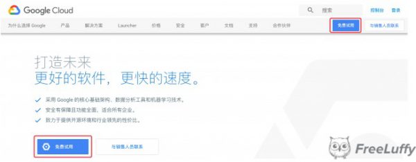 1.登录Google Cloud官网并进行账户注册:https://cloud.google.com/ ,我们在官网首页点击免费试用进行注册:
