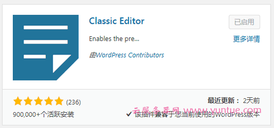 Classic Editor 是由 WordPress 团队维护的官方插件,将保留至 2022 年,它主要用于切换 WordPress 5.0 的经典编辑器或 Gutenberg 编辑器。默认情况下,此插件隐藏新块编辑器(Gutenberg)中可用的所有功能,使用经典编辑器。