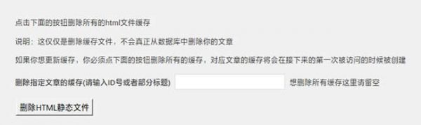 安装启用后就可以在 WordPress 后台 >>“设置”里看到“静态缓存”,这就是 Cos Html Cache 的设置了,里面很简单就一个“删除 HTML 静态缓存文件”的按钮,如下图:
