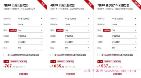 | 云耀云服务器 | 2核/4G | 40G高IO系统盘 | 5M宽带 | 华北-北京四 华东-上海一 华南-广州 |