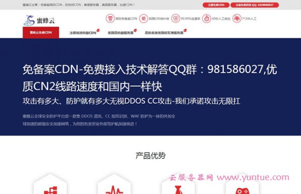 蜜蜂云怎么样,蜜蜂云主营业务为海外服务器无须备案,高防CDN,防劫持CDN,香港服务器,美国服务器,加速CDN,是一家综合性的主机服务商。美国高防服务器,1800DDOS防御,单机1800G DDOS防御,大陆直链 cn2线路,线路友好。