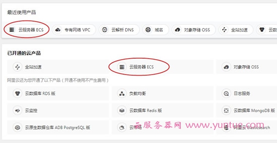 1、登陆云服务器管理平台,点击控制台,在主界面找到并点击云服务器ECS。