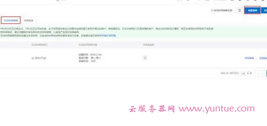 云服务器如何利用自动快照设置自动备份数据?在之前的文章中云服务器网(yuntue.com)小编跟大家分享过云服务器的备份方法,但是那是手动备份,云服务器可不可以设置自动定时备份呢?肯定是可以的,下面小编来跟大家分享下具体的设置方法。