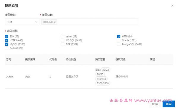 我们在安装阿里云ECS服务器的时候是需要强制选择一个安全组的,早期是不需要的。要么我们就开始自定义一套安全组,要么就先默认后去给当前服务器设置安全组。在这里云服务器网(www.yuntue.com)测试服务器中用后者,在配置好ECS服务器之后,我们再去设置安全组。
