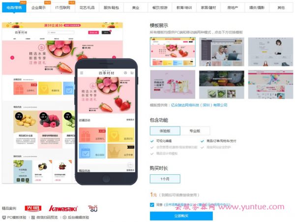 例如,你可以只花1元钱,即可体验到企业标准建站服务。