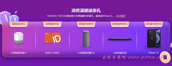 10月28日-11月12日期间累计消费满额可获豪礼,最高送iPhone12。