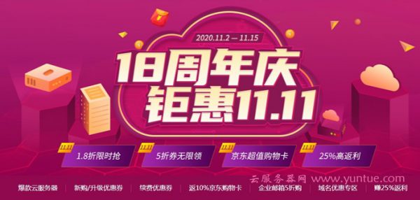 双11活动期间,会员级别为“注册会员”的用户,可购买云产品代金券,最高可返10%京东购物卡,多买多送。限量回馈,先到先得!购2000元代金券,返100元京东购物卡;购5000元代金券,返300元京东购物卡;购8000元代金券,返600元京东购物卡;购10000元代金券,返1000元京东购物卡。