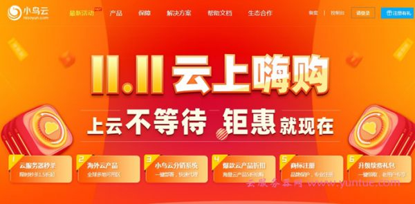 2020年双11购物狂欢盛宴又拉开了序幕 ,好多云厂商都推出了力度比较大的促销活动,怎样才能花最少的钱配置最特惠的产品呢?网上也看到好多人解读了阿里云和腾讯云的活动玩法,今天云服务器网(www.yuntue.com)来解读一下这次小鸟云双十一的优惠活动,希望能够帮到大家。