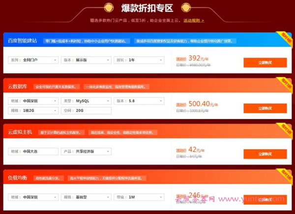 除了云服务器之外,云服务器、云数据库、云虚拟主机负载均衡、服务器托管全部5折,CDN加速包6折。