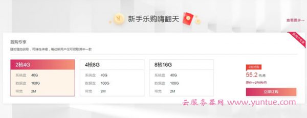 3、8核16G系统盘40G数据盘100G带宽2M,价格167.4元/月(2折抢购),最长可购一年 <<点击购买