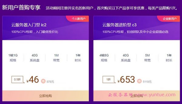 2)云服务器首购0.5折起(云服务器新客专享,之前没买过云服务器的用户)