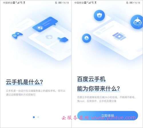操作云手机第一步:安卓用户可访问百度云手机官网,下载安装“百度云手机”APP到本地设备。打开APP后可以看到“云手机”和“客服”两个操作界面,向右滑是个人用户界面。在“云手机”界面,用户可以购买云手机,或者对原来购买的云手机进行续费;百度云手机的“客服”功能十分具有诚意,咨询客服24小时在线,操作相关的任何问题都可以在线咨询。