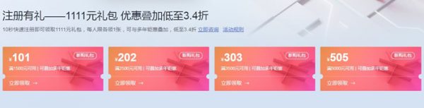 10秒快速注册即可领取1111元礼包,每人限各领1张,可与多年钜惠叠加,低至3.4折
