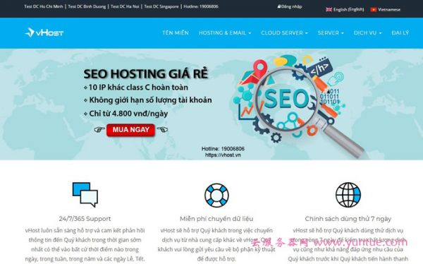vhost是一家成立了10年的越南主机商家,商家销售的产品也比较全面,VPS、虚拟主机、分销主机、SSL证书、独立服务器等应有尽有,机房有越南胡志明市、平阳市、河内市和新加坡。