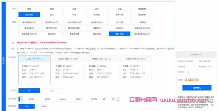 | E5-2620v2(24核) | 16GB DDR3 | 240G SSD | 20Mbps | 不限 | 5G | 480元/月 | 点击查看 |
