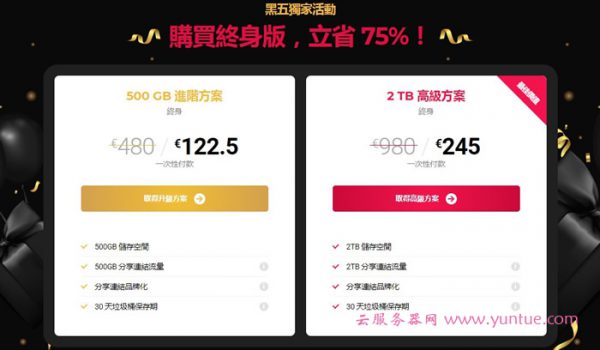 这家注册免费,并赠送10G的永久免费的云存储空间,目前还黑五活动期间:500G终身版本$120;2T终身版本$245。