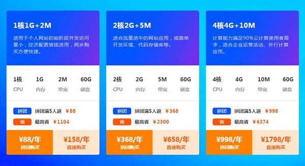 (2)2核2G+5M云服务器: