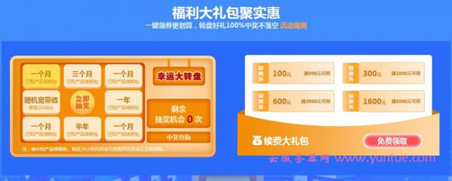注:抽中的产品续期包,将在24小时内自动为您购买的活动云主机续期。