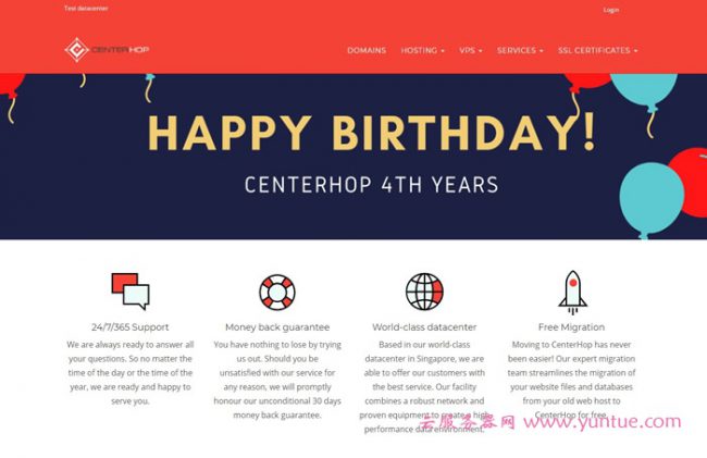 centerhop,正规注册公司(Reg No. 201626159R),主要提供VPS,有新加坡数据中心等。现在VPS价格进行了调整,性价比高了不少,从路由看,电信绕香港,国内还可以(具评论网友反馈,国内绕美国了,建议落地使用)。支持Paypal付款;30天退款保证。