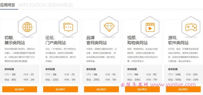 网站初期或展示性网站,信息与访问量小,只需要低配置即可满足要求。后期业务扩展时亦可基于云计算弹性特征随时增加配置。