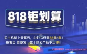天翼云818活动开始了!天翼云818为“818钜划算”活动,买云主机就上天翼云,2核4G云服务器低至88元/年…