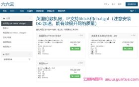 六六云:英国/美国tiktok vps,美西原生ip G口带宽仅50元/月,英国原生ip vps低至60元/月起