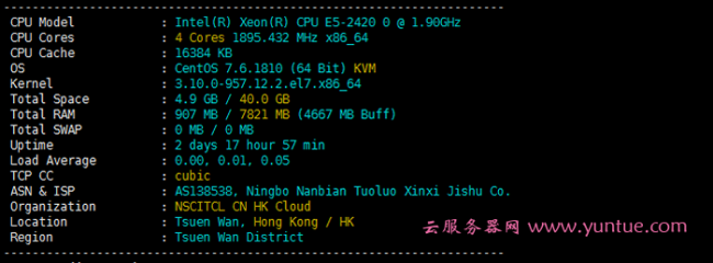 运行时长:2 days 17 hour 57 min ,可以看到这台服务器的在线时长是2天17小时多点,也就是说是我的新服务器啦。