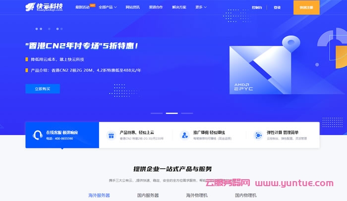 快云科技是一家成立于2020年的新起国内主机商,资质齐全 持有IDC ICP ISP等正规商家。主营产品有:香港弹性云服务器,美国vps和日本vps,香港物理机,欧洲物理机,国内高防物理机以及美国日本高防物理机,新上GPU显卡独立物理机,近期新上国内十堰,金华,成都等优质机房云服务器和海外原生站群(适用于跨境电商,游戏等)产品特色:全配置均20M带宽,架构采用KVM虚拟化技术,全盘SSD硬盘,RAID10阵列, 国内回程三网CN2 GIA,平均延迟50ms以下。国内全绿,硬件配置方面采用E5 2696v2 E5 26969V4等 偏中高端硬件大大的提升机器性能和稳定性。并支持LIUNX/windows系统,建站首选。
