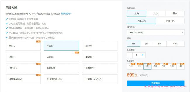 仔细一看1核2G配置1年购买打了5折的,竟然也要699元,竟然比后台打8.3折的还要贵几十块钱!不知道腾讯云怎么算的!
