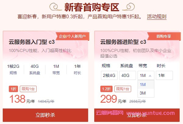 中小企业常见配置:低配的1核1G 1M带宽服务器价格:138元/年