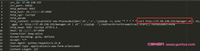 腾讯云防火墙捕获到黑客利用Jenkins未授权访问漏洞利用进行攻击的日志。