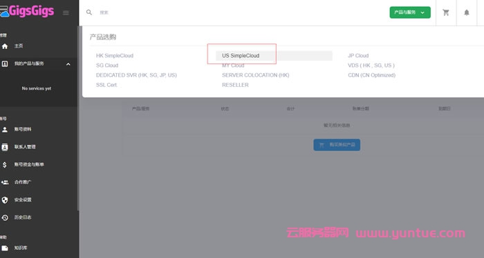 GigsGigsCloud美国高防云服务器选择流程,点击文章当中的直达链接注册账号并登陆,然后如下图选择即可。