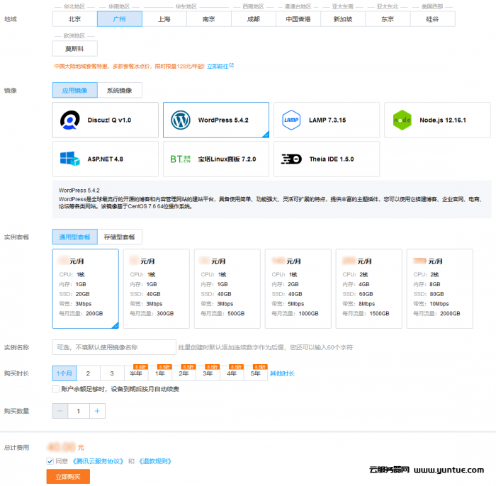首先,购买轻量应用服务器,推荐进入:腾讯云轻量应用服务器活动地址