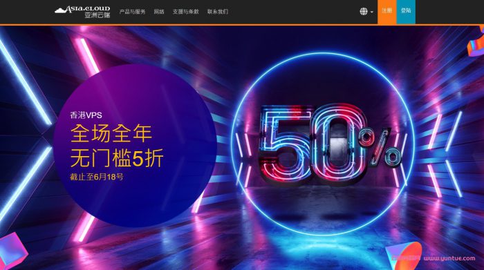 目前,亚洲云端Asia.Cloud优惠码活动,输入“ACHK5”即获5折,属于可循环优惠。5折适用时长为一年。(* 简言之,月付可享12次5折;季付享4次5折;年付享1次5折。)