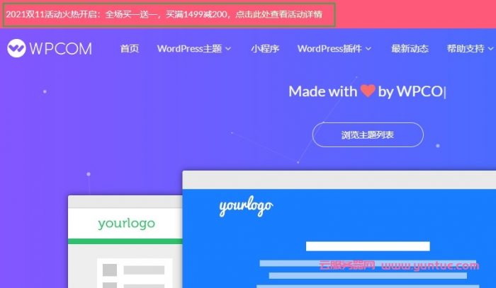 wpcom主题2021年双11活动火热进行中,2021年双11活动即日起正式开启,活动期间所有主题/插件/小程序均买一送一,并有满减优惠,还可推荐好友获取佣金提成。WPCOM全场主题、插件、小程序买一送一,满1499减200,活动力度超大!详情可查阅下面活动,如有需要可前往WPCOM官网(www.wpcom.cn)购买。