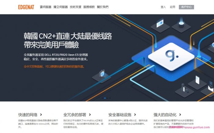 edgeNAT是国人主机商,2019年成立,主营独立服务器租用和VPS主机产品,数据中心包括中国香港、韩国和美国洛杉矶等,均选择国内访问速度不错的机房,直连优化或CN2线路。支持Linux或者Windows操作系统,韩国为首尔LG机房,CN2线路,采用SSD或者NVMe磁盘;美国洛杉矶分为CN2 GIA和CUVIP线路,Cera机房。