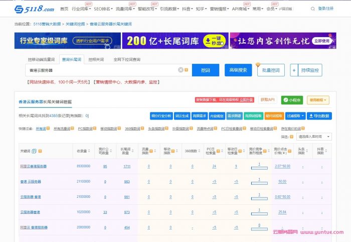 5118关键词挖掘功能通过一个关键词扩展出百万相关长尾关键词,根据关键词的收录、指数和竞价搜索情况得出关键词竞争的难易度,方便站长和SEO从业者选取长尾关键词和优化关键词工作!