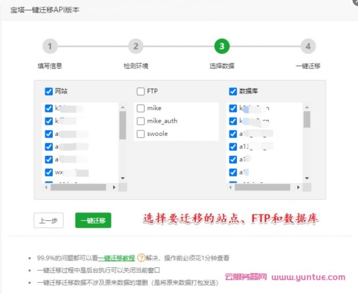 最后:通过这个宝塔一键迁移插件就可以轻松做网站数据搬家了,请根据个人需求,选择站点,数据库,FTP进行迁移,如遇到其他问题,请联系宝塔运维帮助。