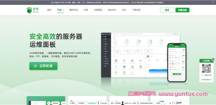 1.安装宝塔面板 首先,您需要安装宝塔面板。您可以从宝塔官网下载相应版本的面板,然后按照安装向导进行安装。按照提示完成安装后,您就可以进入宝塔面板的管理后台了。