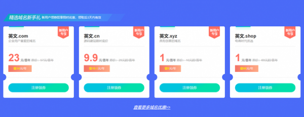 新网,这个就不太多介绍了,国内老牌域名注册提供商,最近看到新网域名活动,新网域名狂欢季,新注册用户(未购买过产品用户也可以)英文.com域名23元/年,英文.cn域名9.9/年,英文.xyz域名1元/年,英文.shop域名1元/年,需要域名的同学可以参与购买,优惠力度还不错。