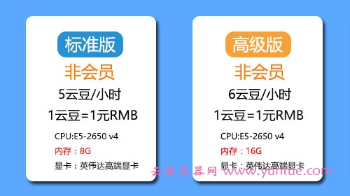 在非会员的情况下,标配云电脑每5云豆/小时,高配云电脑则是6云豆/小时。